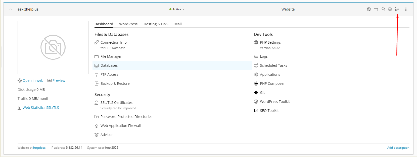 Далее необходимо нажать "Настройки хостинга"