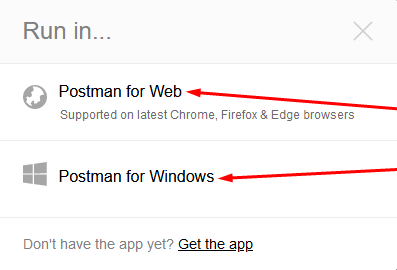 Выберите подходящий вам вариант, мы в этом статье рассмотрим вариант импорта к настоольной программе Postman. Нажмите Postman for Windows. (Вместо Windows можеть быть указан ваш ОС который у вас установлена)